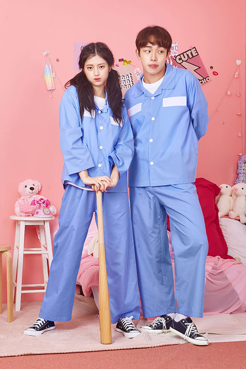 (ST600A) 죄수복 소라색 긴팔 세트